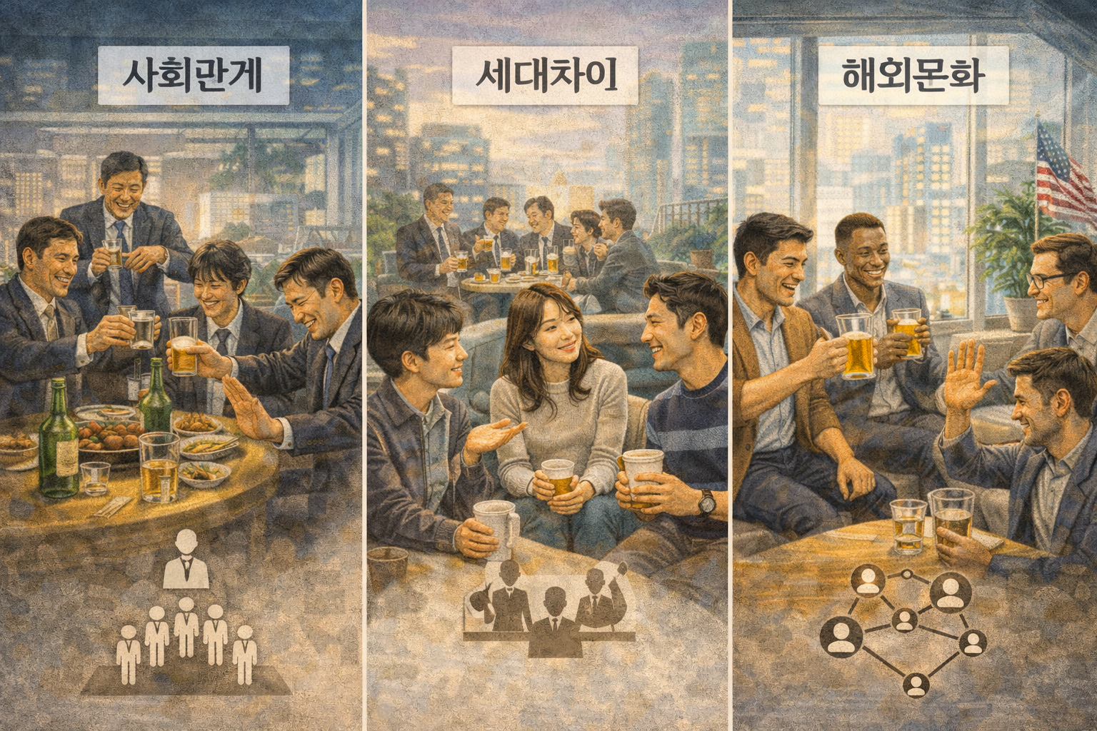반면 MZ세대를 중심으로 한 젊은 세대는 술을 개인의 취향 영역으로 인식하는 경향이 강하다. 술을 마시지 않는 선택에 특별한 의미를 부여하지 않으며, 인간관계 역시 술 없이 충분히 형성될 수 있다고 생각한다. 실제로 주변을 살펴보면 술을 전혀 마시지 않거나, 회식 자체를 부담스러워하는 젊은 직장인들이 점점 늘고 있다. 이들에게 중요한 것은 술자리에 얼마나 자주 참석했는지가 아니라, 업무 환경에서의 존중과 개인의 삶의 질이다.